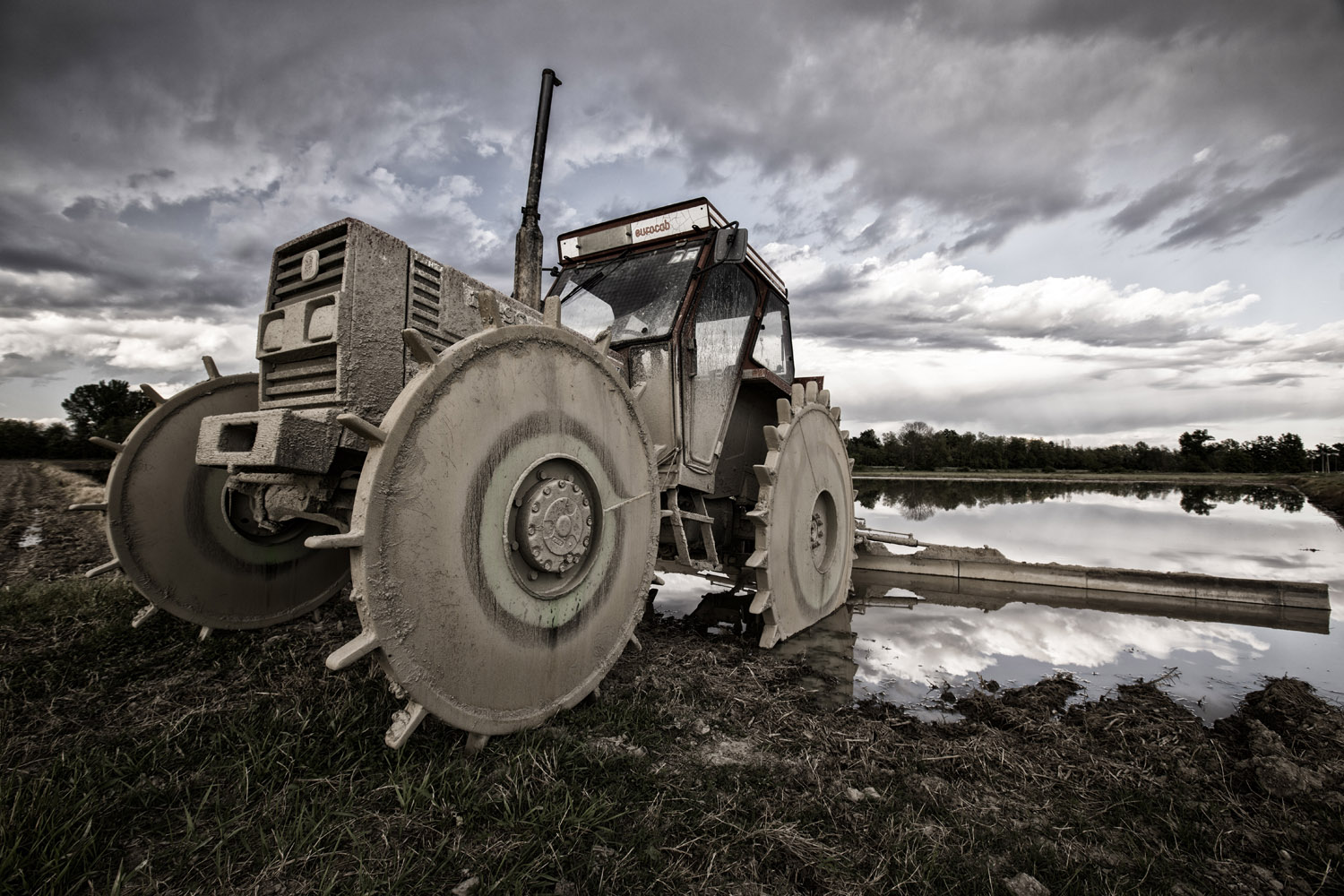 Un'atmosfera in bilico fra il bucolico, l'epico e l'apocalittico. Questo mezzo d'opera molto singolare con le sue ruote dentate, un bel cielo ed i suo riflesso... non manca nulla per essere una proposta interessante... almeno per me!