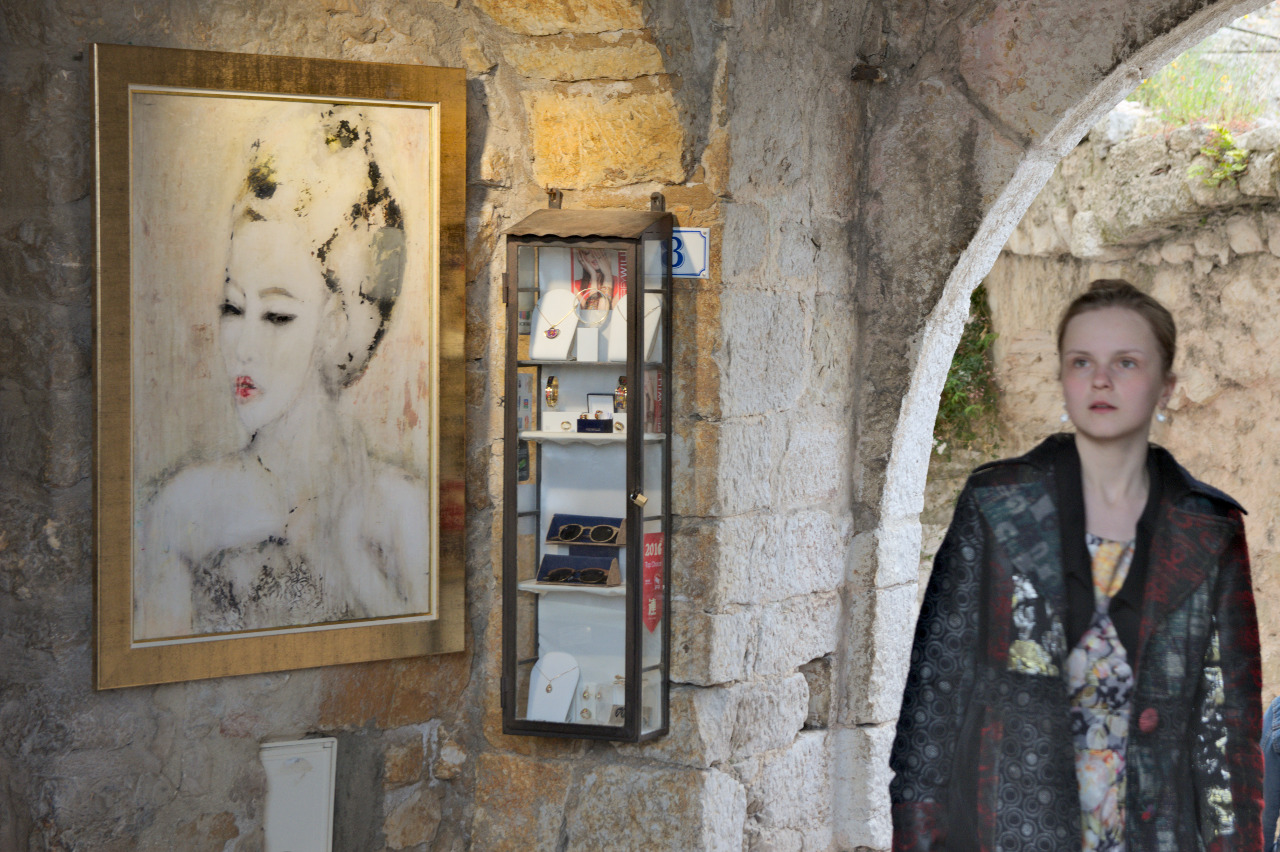 La mia intenzione era affiancare al quadro una passante che avesse qualche somiglianza. Erano a distanze diverse e ho tenuto il fuoco sul quadro. Nell'immagine ci sono un quadro, una teca e la passante ... ma capisco benissimo che possa non piacere