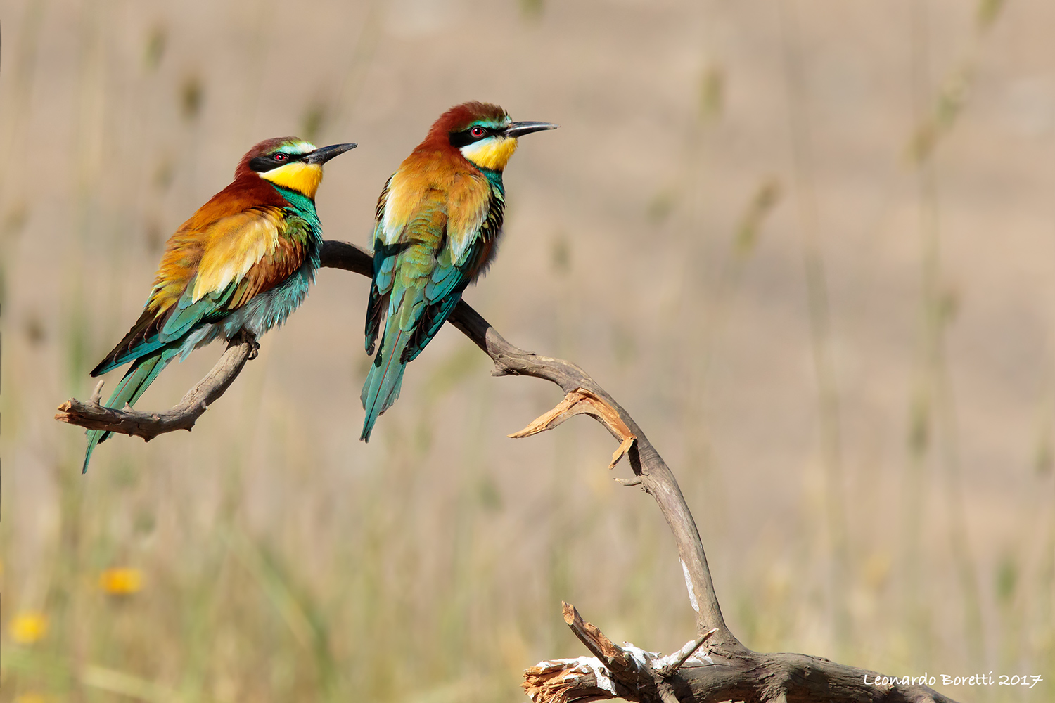 un'altra bella coppia di questi coloratissimi uccelli, questo è il loro momento Smile ...bella, buon dettaglio e ben composta...neri ed ombre un po chiusi...a gusto personale, la parte bassa del posatoio, o includerne più porzione o eliminarla stringendo un po di più sui soggetti Wink