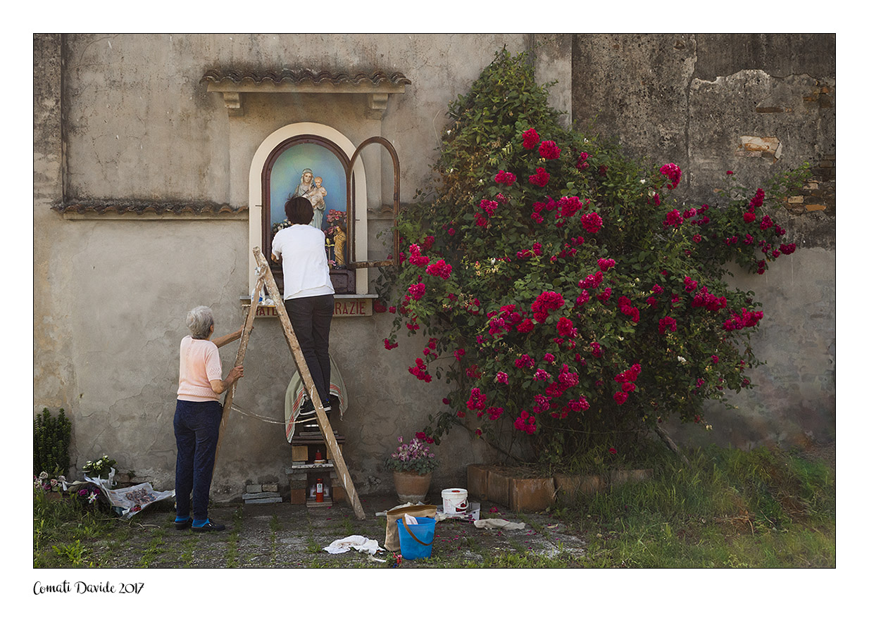 Il passo a destra solo per cercare di prendere leggermente più di lato le persone, la scala e vedere così un po' più la composizione dentro l' edicola. Il passo indietro solo per allargare appena un po'. Ma la foto resta comunque ben vista.