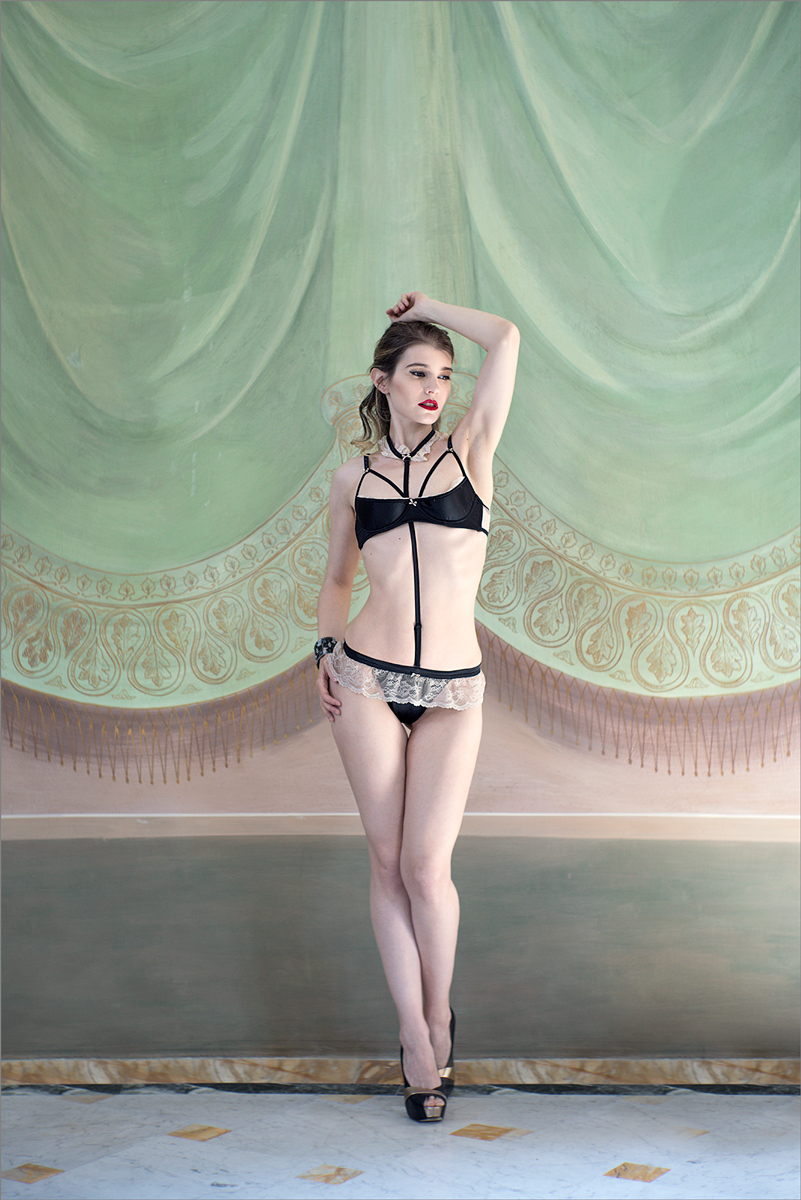 Sei bravissimo Massimo. Con questa tonalità di drappo nel tendaggio, la carnagione lattea e come lunare della modella, la centralità totale del soggetto, trova un accordo perfetto. Eppure scegli alcuni punti fermi, di rottura diciamo dallo schema tonale, di fermo visivo, dico io: come l'intimo deciso, la tinta squillante del rossetto per introdurre una nota sensuale che scongiura la resa algida. Questa la mia personale opinione, che mi rende la tua foto diversa, e come firmata.