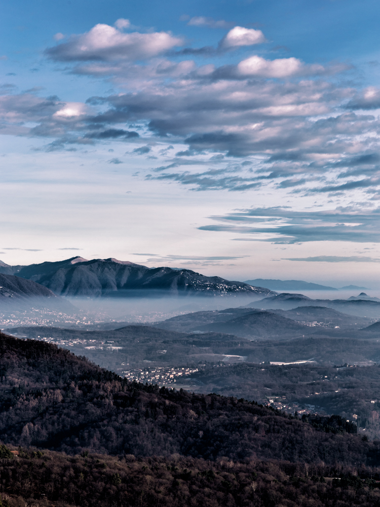 Di grande fascino le velature della nebbia ai piedi della montagna. Un gran bel panorama.