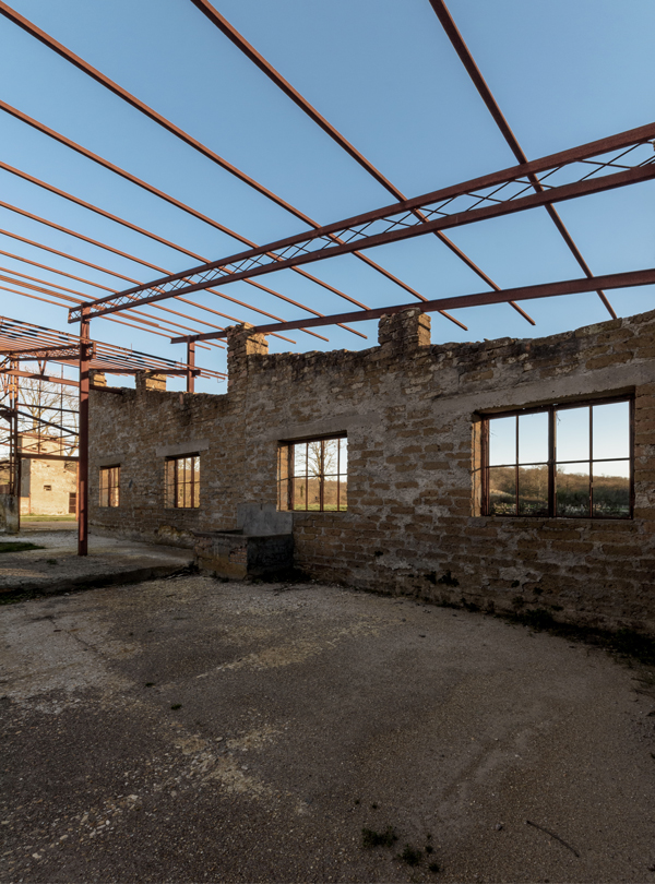 C'era un rettangolo accennato sulla pavimentazione, ed immagino tu lo abbia voluto includere nel gioco della geometrie. Però qui anche un pari lato, e sacrificando una parte di pavimento, si avrebbe un risultato perfetto. E questo perchè in tal maniera la ariosità del cielo , la parte più colorata slanciata e luminosa della scena , fra le sbarre, avrebbe il massimo risalto. Mi piace.