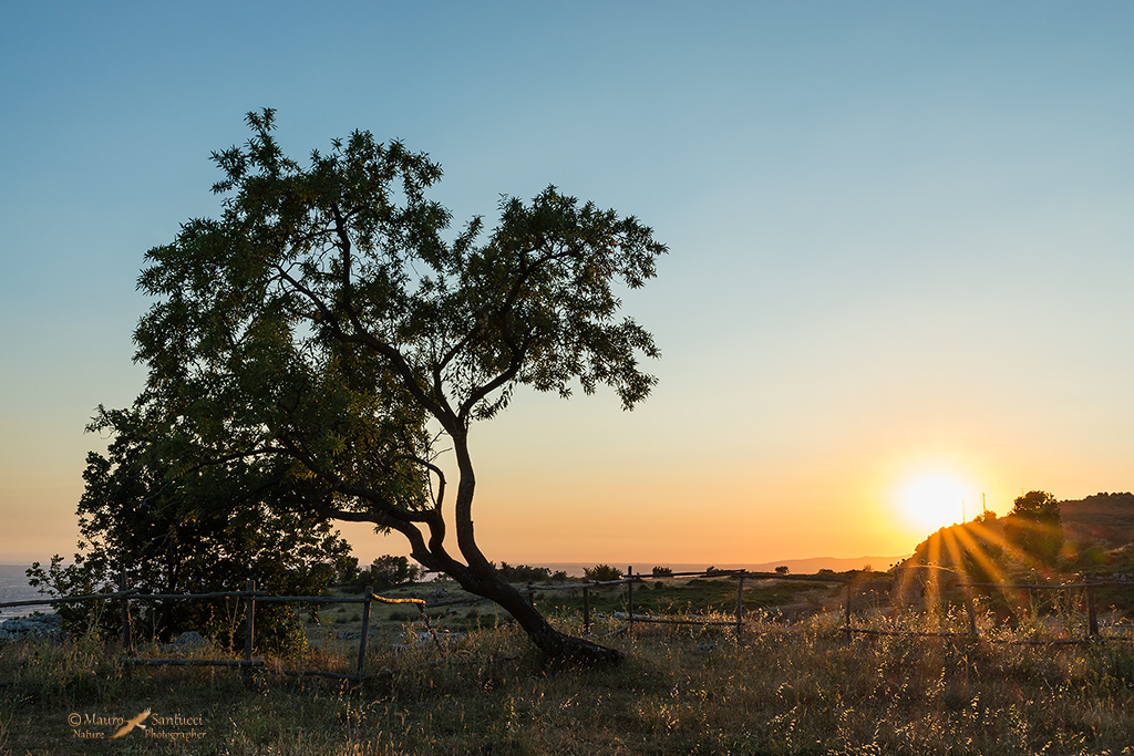 In questa composizione ben studiata la forza del calore solare, la traiettoria dei suoi ultimi raggi, sembra inclinare il tronco dell'albero alla sua regalità. Semplice ed efficace, e pure coraggiosa nei confronti del sensore, dato che hai sfidato il sole perfettamente tangente alla linea dell'orizzonte con la sua raggiera, ma quindi ancora capace di colpire forte con la sua luce.