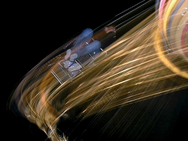 Simpatico esperimento, mi piace la posizione diagonale nella quale hai messo le scie metalliche della giostra.