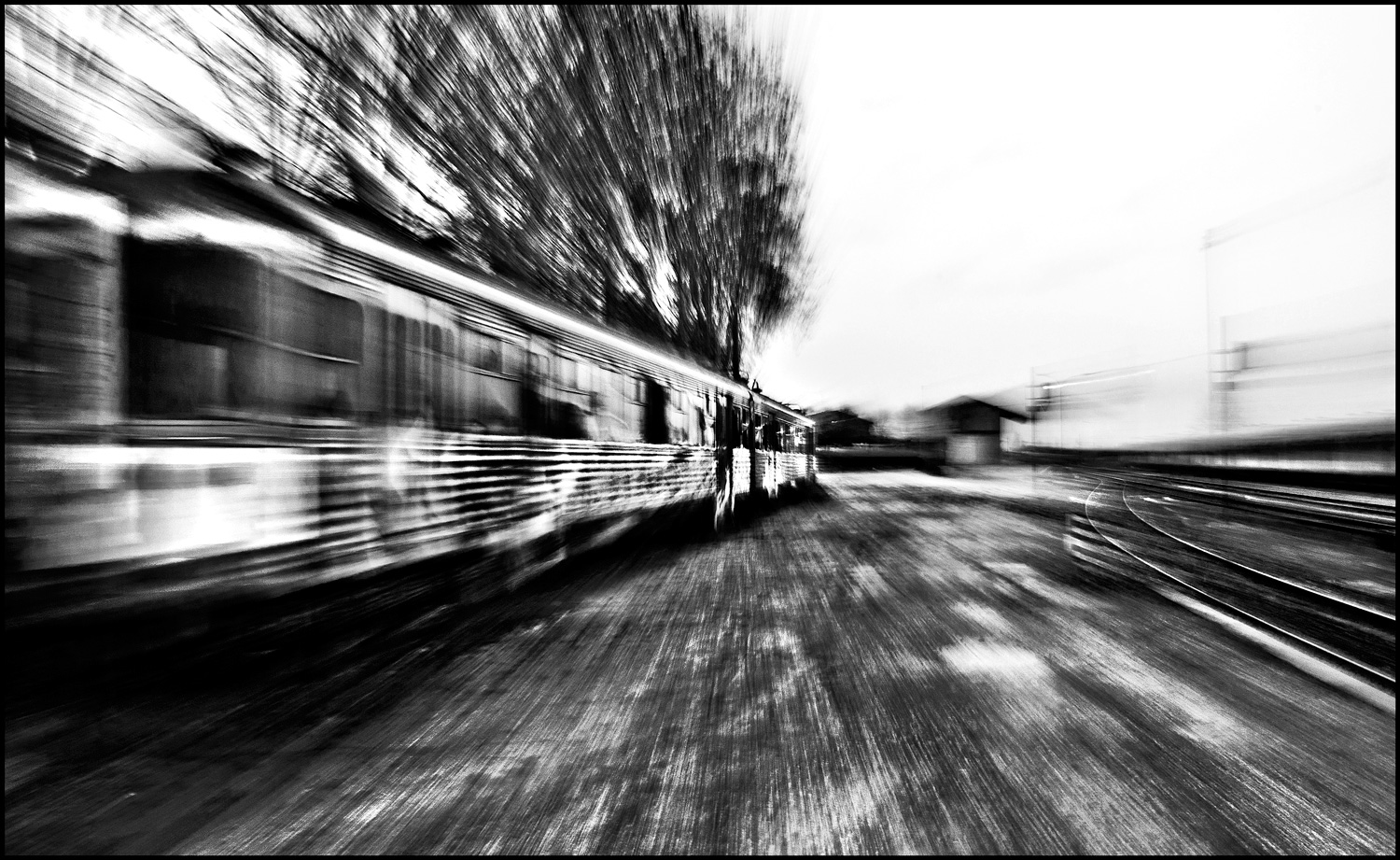 un b/n graffiante per questa immagine dinamica che sembra volerti risucchiare a folle velocità