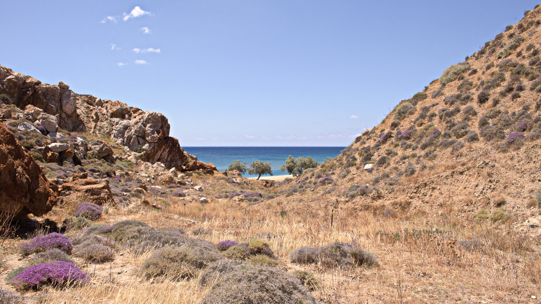 Ciao Daniela,una foto interessante, non ci troviamo davanti alla classica scena balneare o del paesaggio marino.Con piu' difficoltà si mostra la spiaggia attraverso l'entroterra,i sentieri per raggiungere il mare,la terra brulla.Sotto questo aspetto la fotografia propone uno scorcio, dell'ambiente mediterraneo.E' bello vedere questo spicchio di azzurro,alla fine dell'imbuto delle montagne.Si puo' fare come si vuole,anch'io penso che a volte sarebbe una foto diversa,anche l'immagine riproposta leggermente modificata è gradevole.La visione panoramica abbraccia un po' di piu' il paesaggio e seguendo il movimento deciso delle colline(da un lato in particolare) alla fine si vede con lo sguardo la spiaggia.C'è una lieve tendenza al magenta,per via dello scenario arido e assolato.A 100 iso dovrebbe esserci la resa migliore per la macchina.La zona di destra appare piu' vuota nell'inquadratura,mentre sul lato c'è, alternanza di forme e colori.