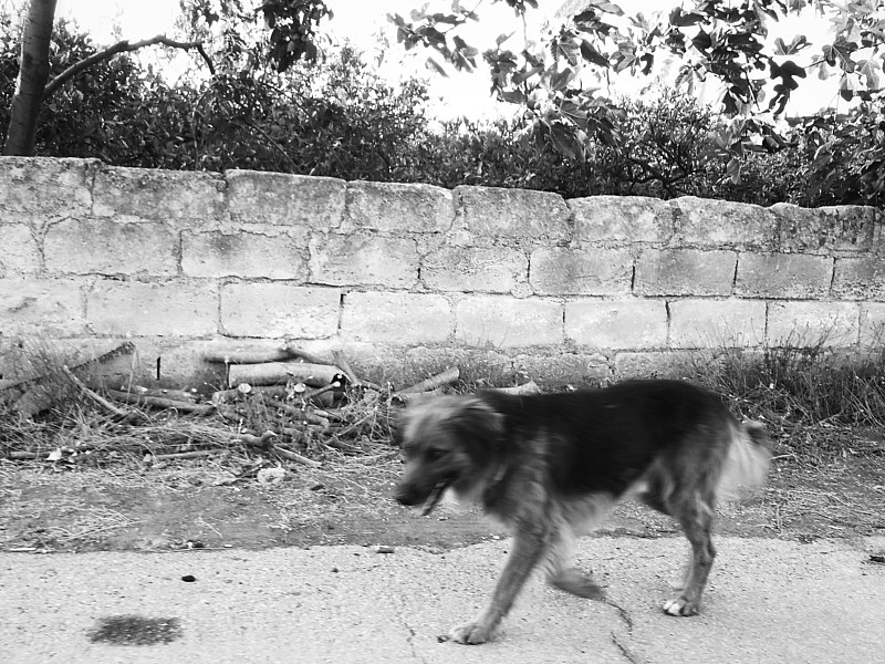 Ciao Opeio, è una foto che mi attira perché l'espressione canina, complice il bel mosso, è indefinita tra il sorriso amichevole, la digrignata feroce e la prudenza tipica di ogni cane di strada!