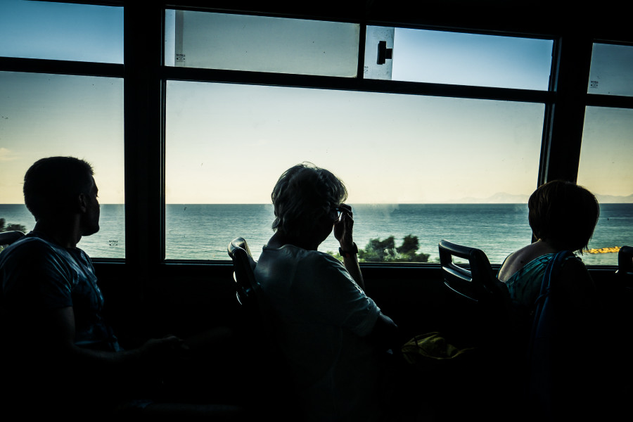 mi colpiscono gli sguardi rapiti dei passeggeri verso la meta finalmente raggiunta.