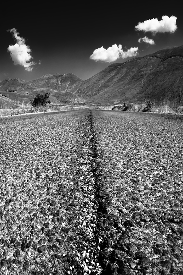 Un elegante b/n accompagna questa visione prospettica, che conduce fino alle 3/4 bellissime nuvolette isolate. Interessante la scelta del pdr, con l'abbondante terreno incluso nel frame.