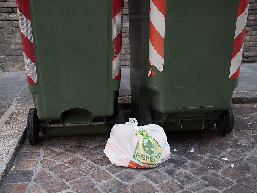 @ Ankelitonero, è uno scatto di stamattina, ne ho fatti tre ed il primo, curiosamente, aveva il taglio da te suggerito (anche se, onostamente, avevo notato solo la scritta sul fagotto): comunque i cassonetti antropomorfi, con quel taglio, ora li ritrovo anch'io. Grazie molte.