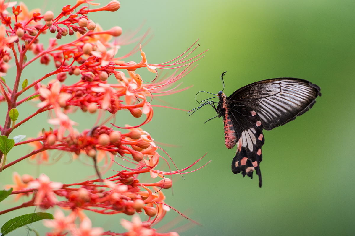 Ci s'ha da coplimentare , belle le zampette già tese per districare tutti quei pistilli(?) per un atterraggio senza danni...pare anche che la farfalla goda dei riflessi dei fiori per colorarsi di rosa....una photo di una resa cromatica superlativa.
