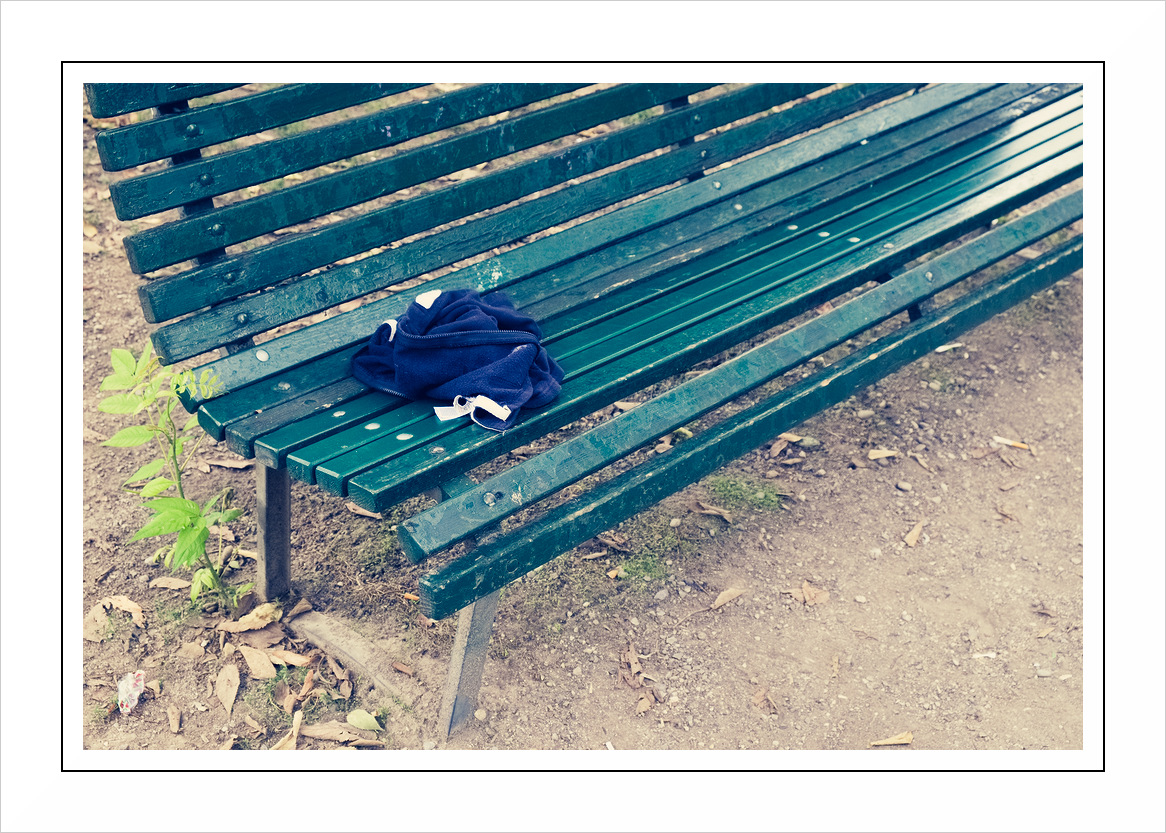 Una panchina,un indumento lasciato li ..chissa cos è successo.In quante storie avrà avuto una piccola parte quella panchina, silenziosa partecipante alle vicende di una marea di persone di passaggio. Ma la cosa che mi piace di più è la piantina,sua compagna sempre presente,che sembra affacciarsi,quasi poggiando una manina per rassicurarla e guardare se è tutto ok. Mi piace Bravo Max  _________________
