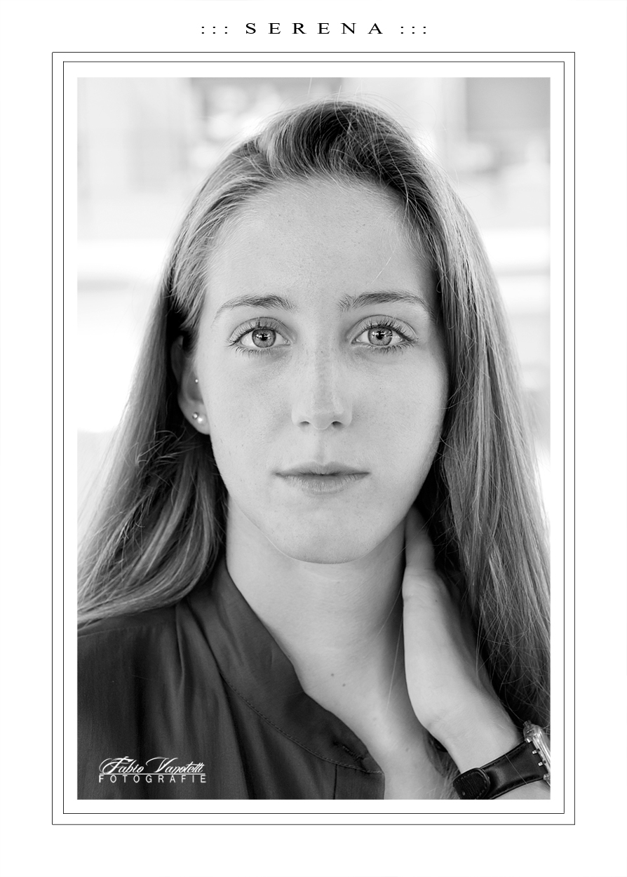 Per come la vedo io, la cosa in assoluto più difficile in un ritratto di una ragazza stupenda come Serena è la capacità di cogliere un' emozione particolare, che possa trasformare la foto da semplice "documento" di bellezza a vera foto artistica.