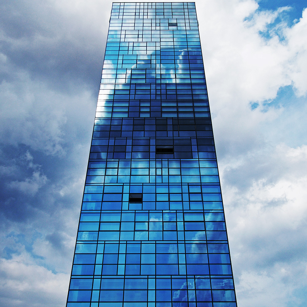 | di solito in questi scatti di edifici alti le linee convergenti donano imponenza e slancio ma se lo slancio è troncato il tutto crolla come il castello di carte. Quindi suggerisco maggiore aria sopra. Eliminerei la dominante blu.