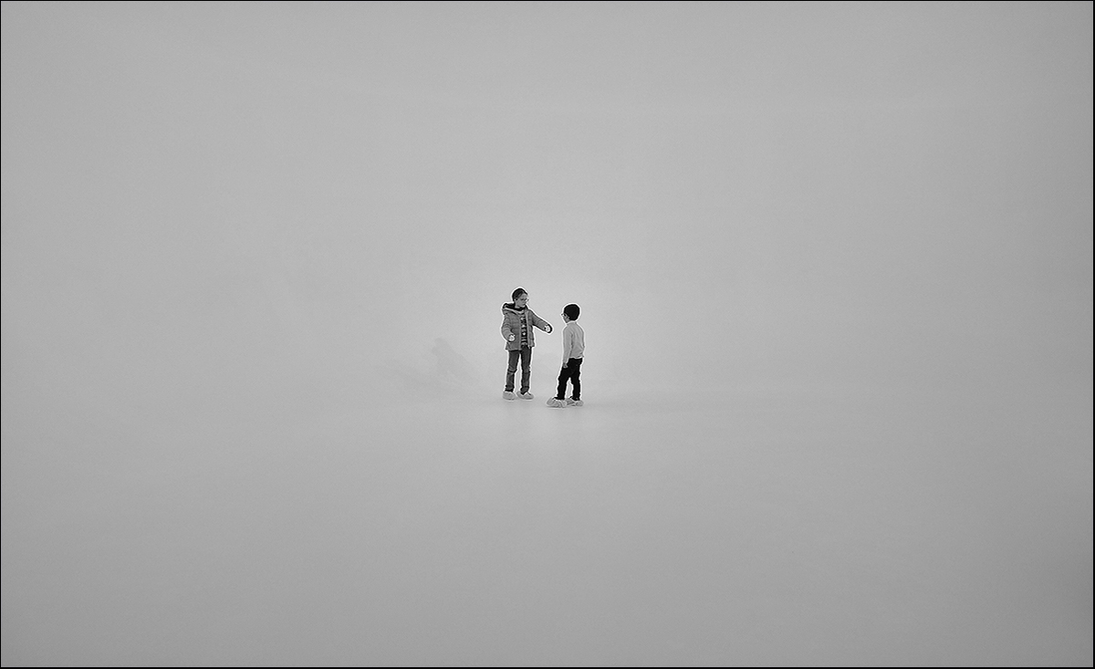 una foto che ricordo molto bene perché questi bimbi sperduti nel candore mi avevano colpito molto. Dei problemini tecnici ti hanno già detto gli esperti, comunque resta un'ottima immagine