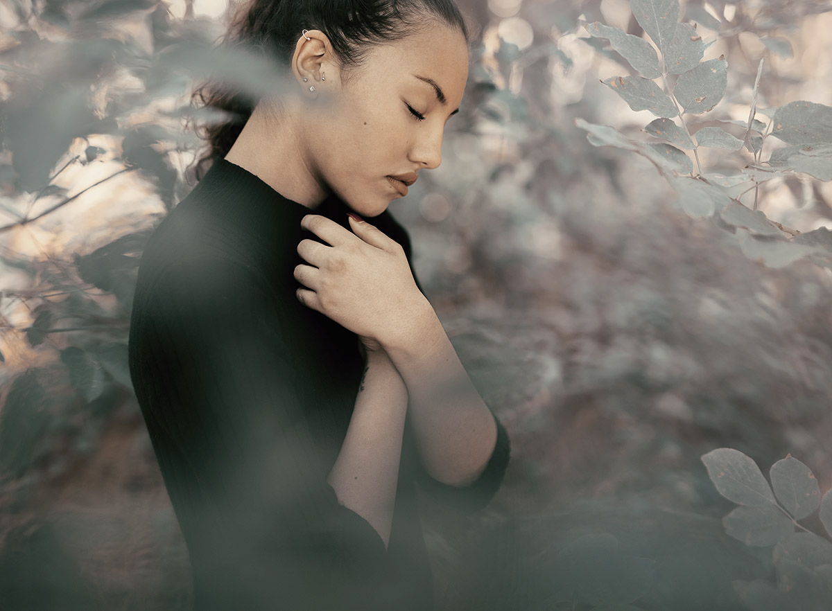 Lo sfocato è meraviglioso, così pure la posa dolce e sognante di stampo ritratto emotivo. Non mi piace il taglio della testa; enfatizza la fronte molto alta della ragazza. Non vado pazzo pure per la maglia nera che fa a cazzotti con le tonalità pastello delle foglie. Se posso permettermi, cercherei di correggere pure la differenza tra l'incarnato del viso e delle mani.