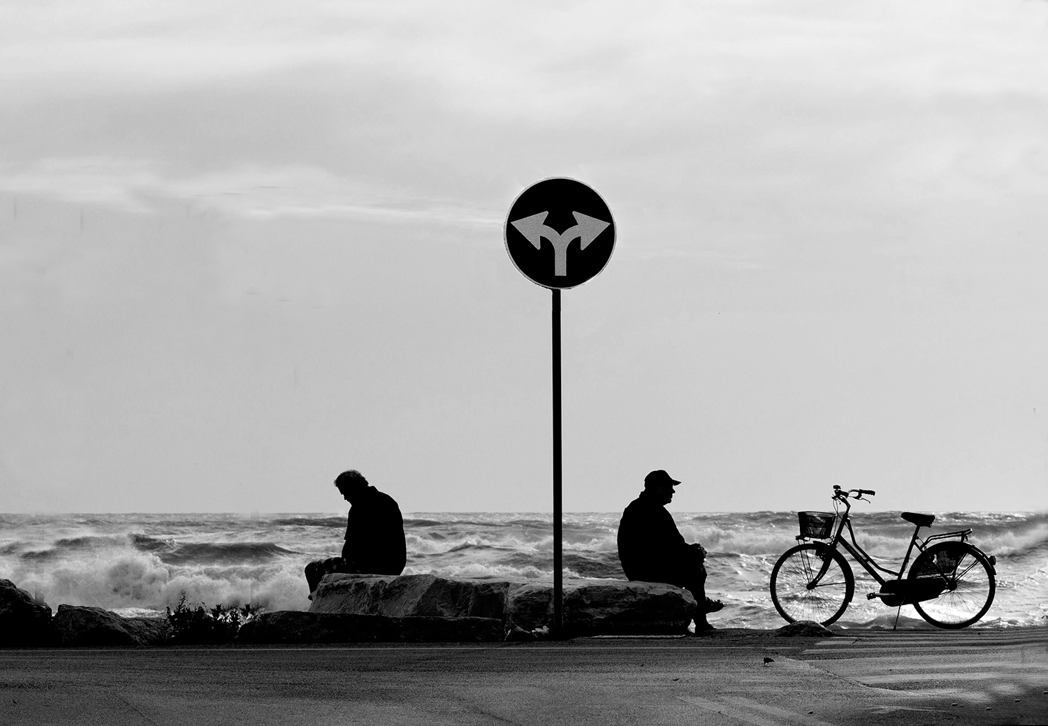 Il segnale stradale e i due uomini divergenti, una gran bella foto per me..