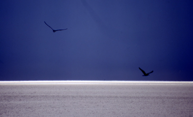E' praticamente un monocromo più la striscia grigia. Non è che ciò sia male però a sto' punto fallo uniforme il blu del cielo, poi contrasti al massimo gli uccelli e gli dai nero corvino compatto, senza ombre. Raddrizzi l'orizzonte, saturi e via.