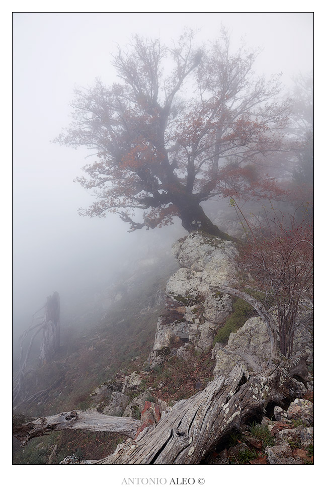 Bella questa proprosta autunnalle delle tue parti.L'asprezza del tronco e della roccia avvolte amabilmente dalla nebbia  _________________