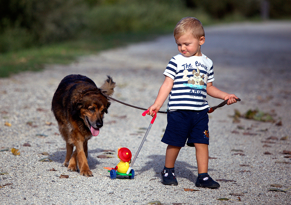 Già... perche i nostri figli tendenzialmente "usano" queste meravigliose creature come dei peluche eh eh , fai questo, fai quest'altro , mettiti cosi, non muoverti Ma poi esce il lato di questo splendido amico che sa perfettamente di avere a che fare con un bimbo e quindi, si presta ad ogni tipo di iniziativa indossando questa maschera paziente e dolce ... lui , è sempre disponibile , ed è , in questo caso specifico bellissimo  |