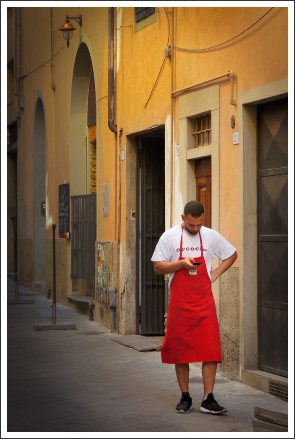 C'era qualcosa a destra che ti impediva la ripresa?, lo dico perché a livello compositivo la parte sinistra è sovrabbondante mentre la luminosità della parte centrale e presumo anche oltre avrebbe accompagnato bene il rosso del grembiule.