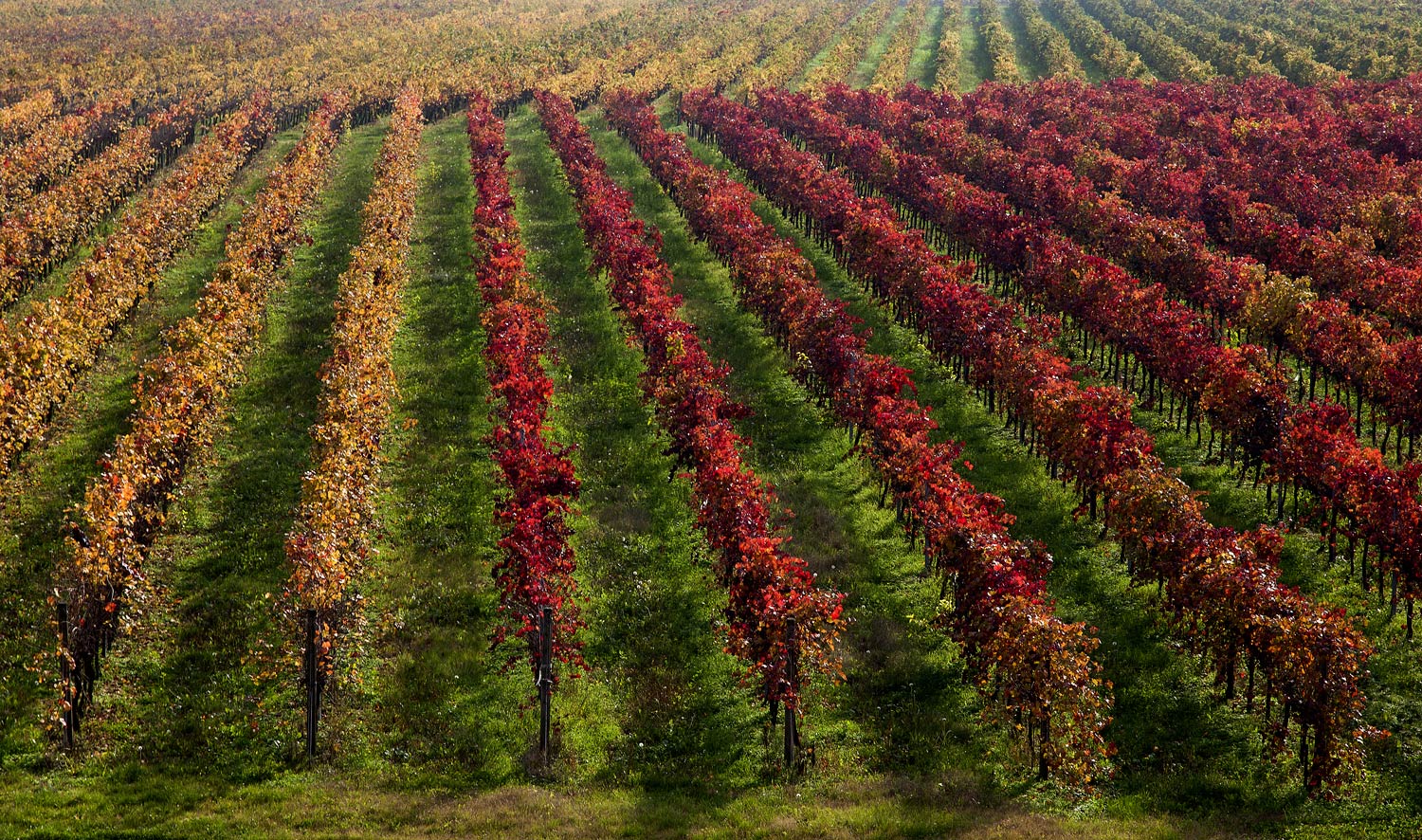 Un bellissimo alternarsi di colori autunnali con i filari a dare profondità e a introdurre gli ulteriori filari di sfondo. Ciao  |