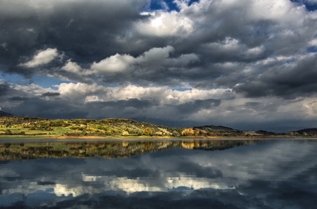 Un bel riflesso ripreso al momento giusto e con la luce giusta che illumina le le colline.