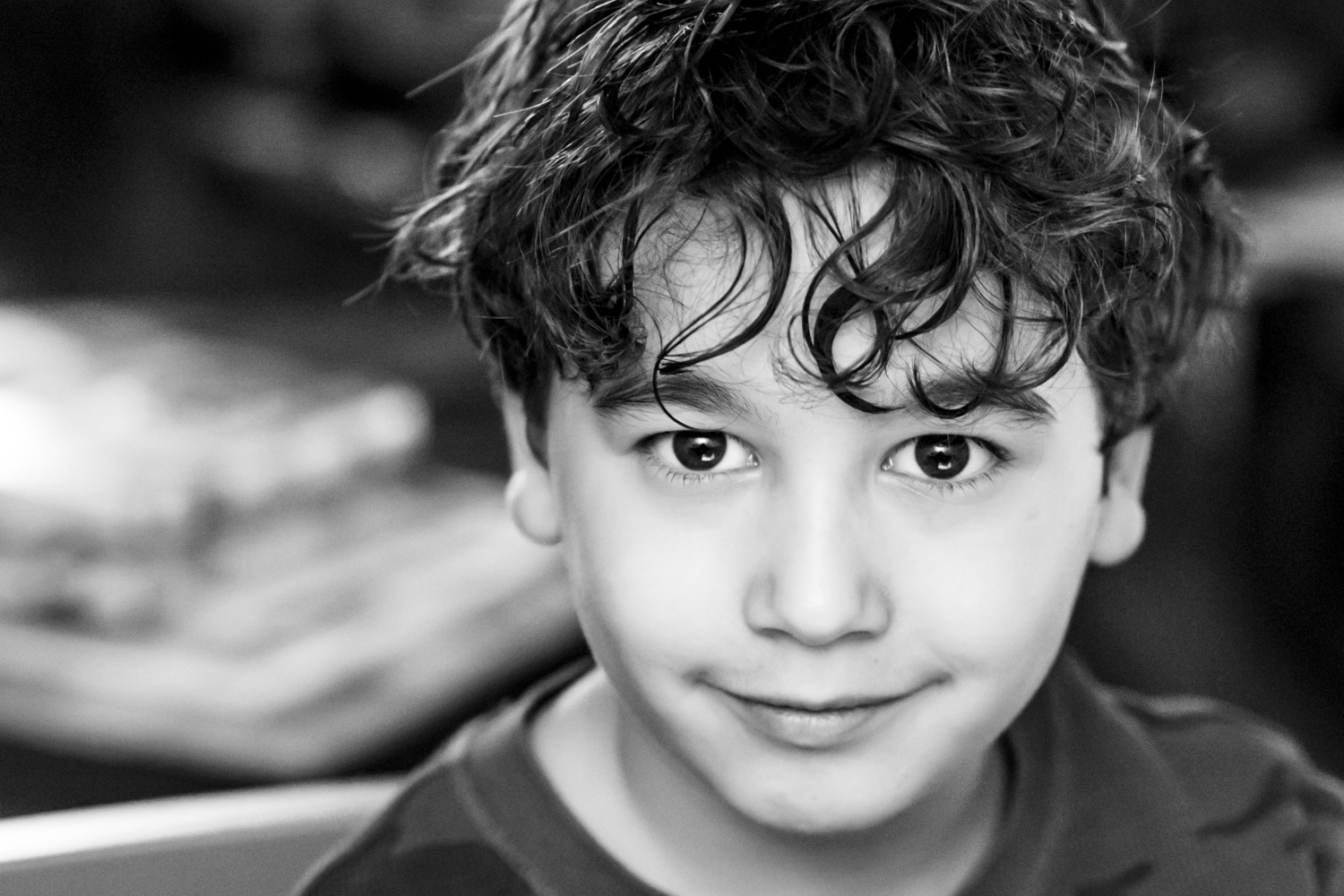 Non saprei se la morbidezza è dovuta al tempo breve di scatto oppure non sei voluto intervenire con una azione di sharpen sugli occhi in post, ma ti dirò che questa morbidezza unita al sorriso splendido del bambino non mi dispiace affatto, anzi...