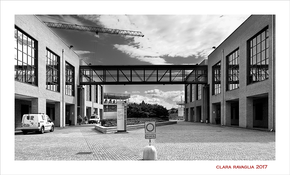 Prevale comunque la buona conversione e l'intelligente richiamo del braccio della gru con la passerella sospesa che 'trafigge' l'edificio nel suo bel riflesso.