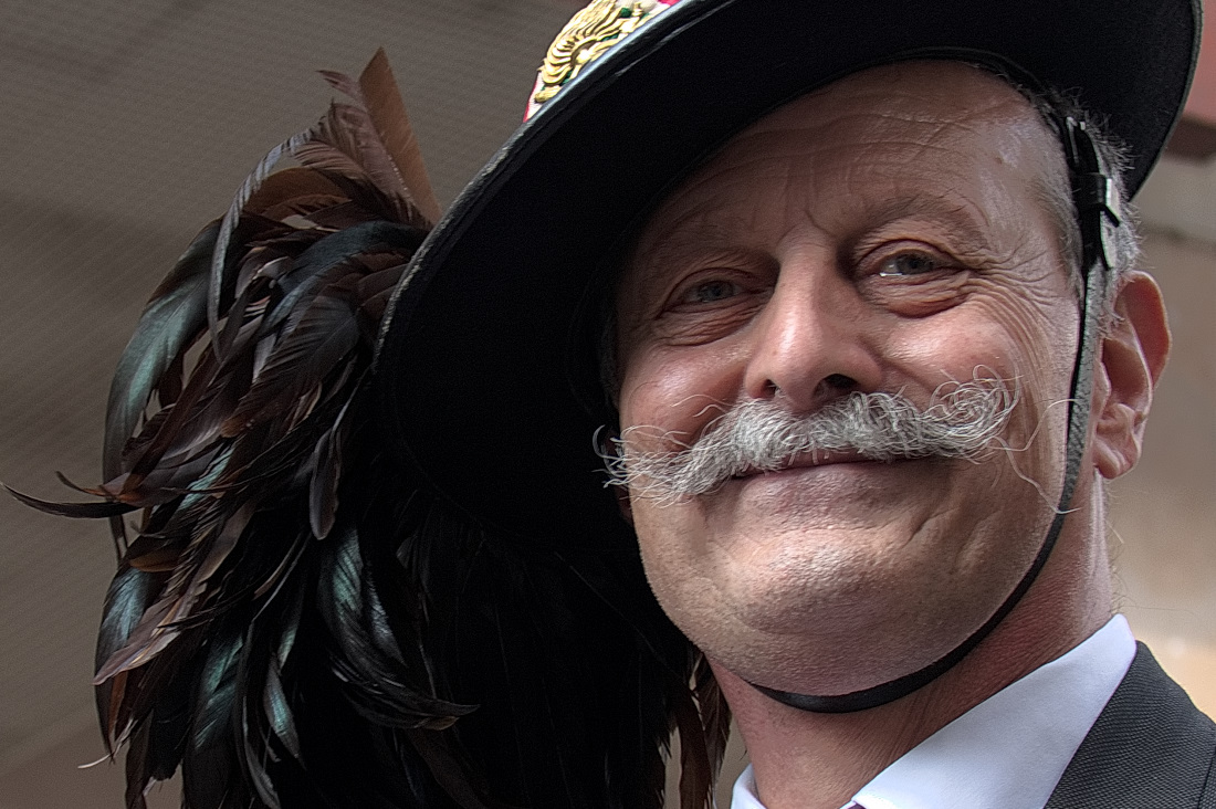 Ciao Daniela Smile effettivamente qualcosa di migliorabile c è.La resa del viso non è impeccabile,non so se sia frutto di un po' di micromosso o di una maf non impeccabile sugli occhi, anche l'ombra della falda del cappello che tiene un po' in ombra l'occhio non mi fa impazzire, e il pdr mi sembra leggermente più in basso ,non sullo stesso livello del suo viso .Ma detto questo,mi piace come hai composto, con gli occhi su un punto forte del frame,con il cappello che sfrutta bene la diagonale e la corposa presenza piumata che non è di ingombro ma trovo tutto sommato bilanci bene il tutto. Ma su tutto ciò che mi colpisce è la bellissima espressione che hai colto,un sorriso affettuoso,che mi fa pensare ad uomo caloroso e paziente,molto allegro seppur composto e con cui sicuramente hai creato una bella empatia,cosa sicuramemte importante,per cui brava Ciao