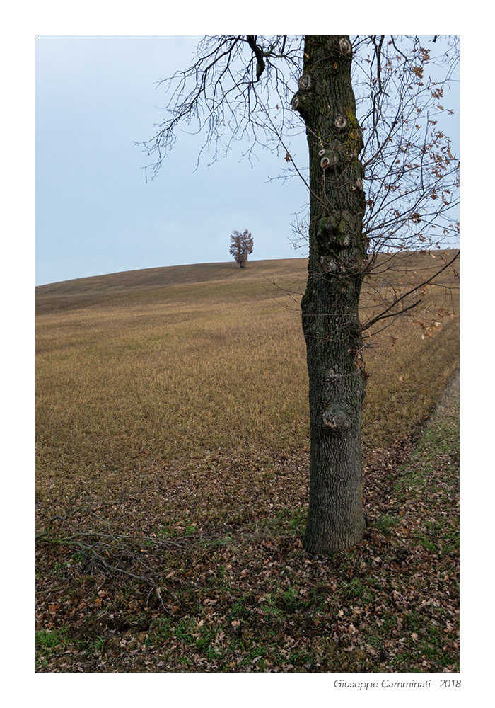 Sembrano davvero darsi la voce nella lontananza, nei vasti spazi scanditi da un cileo omogeneo, di azzurro pallido ,e da una base di foglie cadute che sembrano frusciare piano in sottofondo: ci vuole gusto ,e fantasia, per dar voce( letteralmente), ad una proposa come questa.