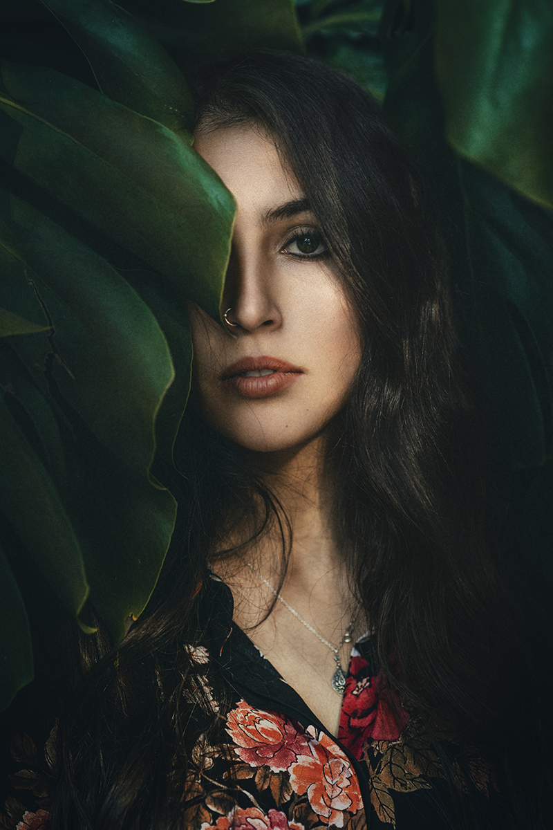 Ciao, trovo particolare e ben fatto questo ritratto. La bellissima modella, l'idea di farla apparire tra le verdi foglie e soprattutto lo sguardo con l'occhio assolutamente spontaneo lo rendono molto particolare.