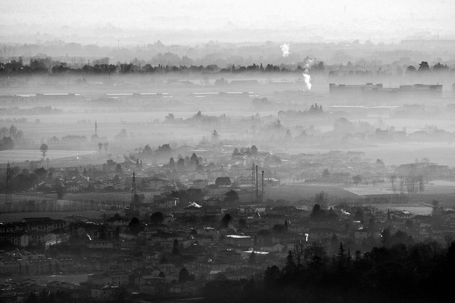Mi piace questo susseguirsi di forme che giocano a nascondino tra la foschia.
