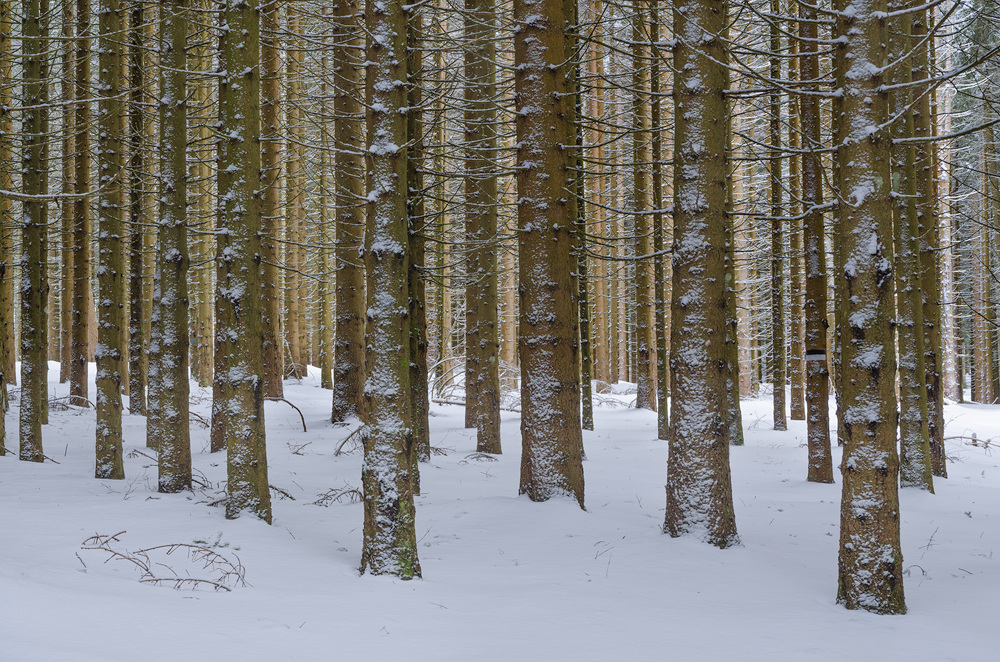 Certo , era possibile eliminare totalmente la parte inferiore, trasformando la scena in una texture naturale autoconchiusa ed efficace; eppure io mi trovo ad apprezare la scelta compostiva prima, dato che il tappeto nevoso , contestualizzante, è piacevolmente invaso da una lucentezza graduale, che passa dall'ombre piena del primo piano ad una irruzione di luce intensa al centro delal scena , spingendo così naturalmente il nostro sguardo in avanti.