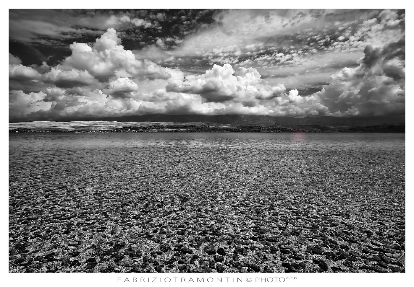 | Un gioco di contrasti molto bello. Ampio invito di sassi e nuvole ricche nel cielo per me entrambi perfetti, mentre nella parte centrale il piatto ricco di soggetti all'orrizzonte di confine rischia di divenire un poco confuso. Probabilmente alla fine non hai convertito in scala di grigi il tuio lavoro ,(cosa d'altra parte non obbligatoria) e , se si mantiene il lavoro in RGB, bisogna sempre controllare il lavoro finale.