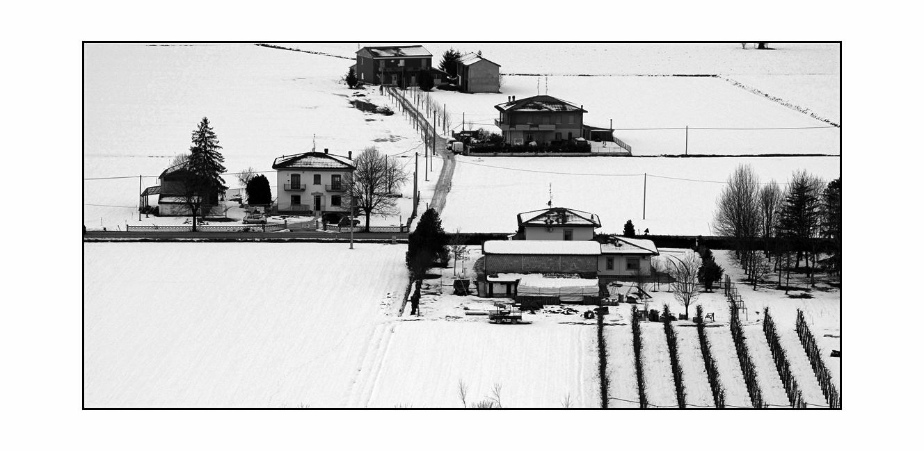 Mi piace la geometria delle case e delle strade che confonde i piani tridimensionali... la casa in basso a destra sembra essere "sotto" l'altra... (e in effetti, pensando bidimensionalmente, lo è...)