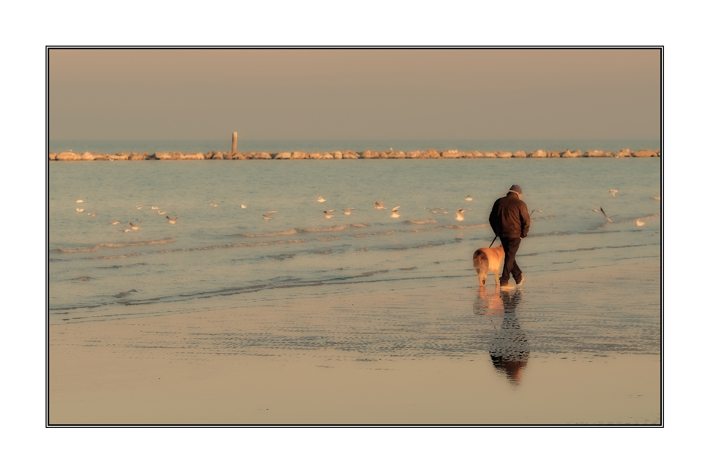 Ciao Gianni, la scena mi piace molto ...è mare quindi la mia passione . Bello il riflesso intero dei due amici ed il volo di gabbiani ,così come la composizione sui terzi .l'unica cosa che mi sento di dire è che la PP(credo sia questo) non ti abbia favorito, c'è come un'impastamento generale . Mi correggerai se mi sbaglio.