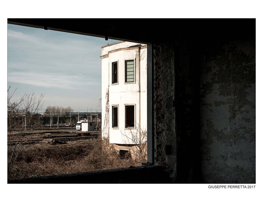 Luce piena sulla facciata ricurva in esterno,, che trova poi una risposta altrettnato chiara e brillante nell'autoarticolato in parcheggio, acconto alla cabina in sfondo. Finestre nel bianco , ad interrompere la omogeneità della vernice come bocche oscure; tutto il primo piano è poi giocato sul perfetto dosaggio delle ombre ,e su quano e cosa lasciar intravvdere nell'ombra. Parete marezzata dai segni del degrado, come un texture spontanea creata dallo scorrere del tempo. Racconti di vita trascorsa sentre interessanti. E difficili perche con tali soggetti, se non si sa usare la luce e farla scendere a chiari patti con le ombre, si scivola , in pochi attimi, nello squallore visivo o nella insignificanza.