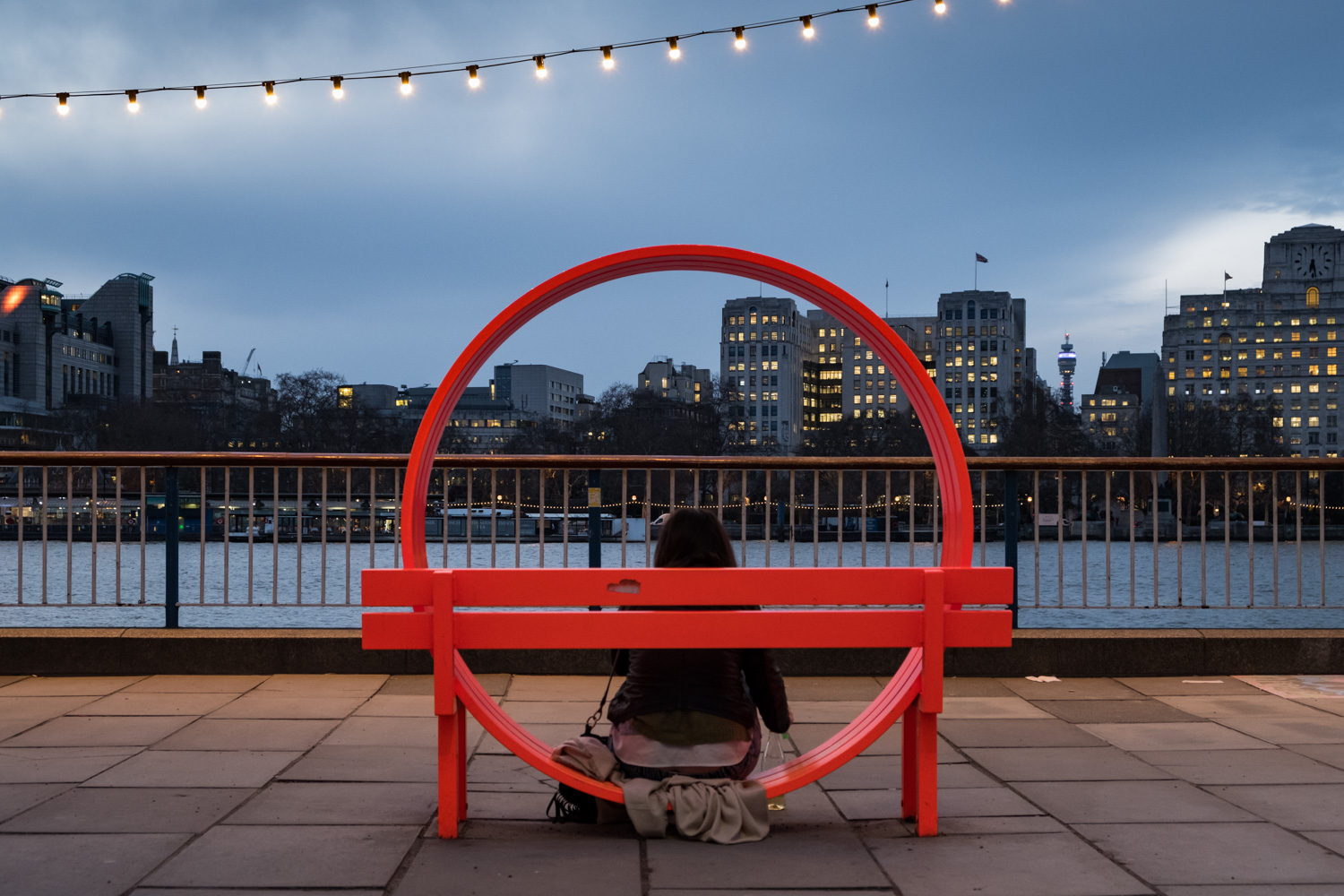 Foto che incuriosisce e appaga esteticamente.Bellissimo il colpo d'occhio che questo rosso vivo regala,peccato per il fuoco,ma ci si può passare sopra.Mi piace molto come hai composto,la gestione di luci e colori.Un tocco in più che impreziosisce l'immagine i fili di luci,in alto e dentro il cerchio.Unica cosina ina che stona ,la macchia di luce sul palazzo a sx.