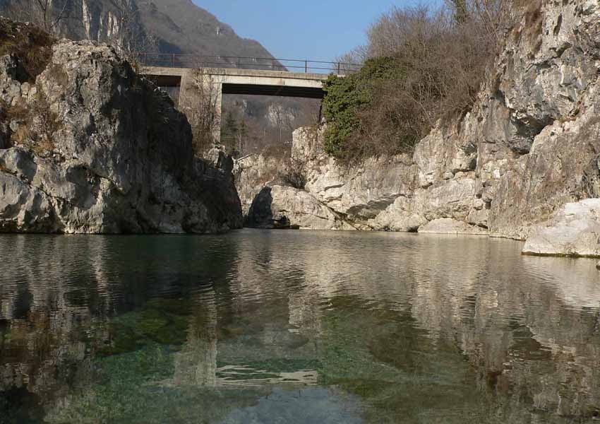 C'è invece da sperare che non vediamo mai in questi posti i viadotti dell'autostrada; questo vecchio ponte sta diventando grigio come le rocce, poi darà meno fastidio: ma i viadotti dell'autostrada che si vorrebbe far passare di qui... ed il rumore.. sarebbero la dannazione eterna. Si tratta della prosecuzione nord della A31, la famigerata PIRUBI, l'autostrada Valdastico insomma, finora fermata dalla posizione intransigente dei Trentini. Spero di non averti tediato, ma chi fotografa sente anche queste cose..