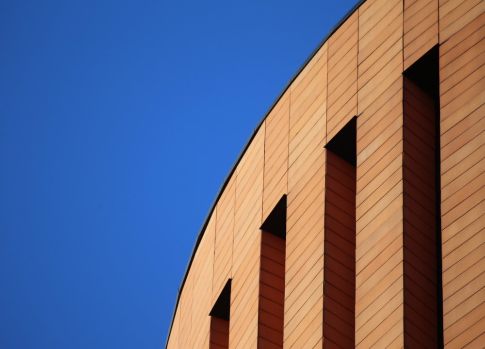 Un soggetto semplice ma efficace. E il tiolo promette e maniene. Un cielo così netto, omogeneo e luminoso, non ruba la scena alla curva ,anzi, ne esalta per contrasto l'impatto e la valenza delle tnte calde. Però siamo in sezione architettura, dove la correttezza delle linee vuole la sua parte. Io llora avrei operato uan piccola correzione, dato che le poche ma nette forme in campo mostrano il fianco a quelche critica per le verticali soprauttto. E le matteonelle dell rivesimento accenuano i problemi. E poi avrei scelto diversamente il formato. Qui lo spazio vuoto a sinistra, se non è eccessivo, però per me è poco armonico. Un bel pari lato, più pulito ed elegante , per me ci starebbe. Allego , speranod no dispiaccia, per farmi capire su linee e compo. E gli esperiti di sezione magari ti consiglieranno con maggior precisione di me.