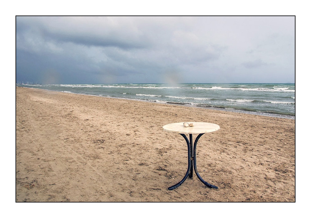 | Un tavolino, due sassi, il mare. Mi piace.