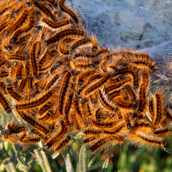 I girasoli di Van Gogh? No, solo bruchi su una ragnatela.