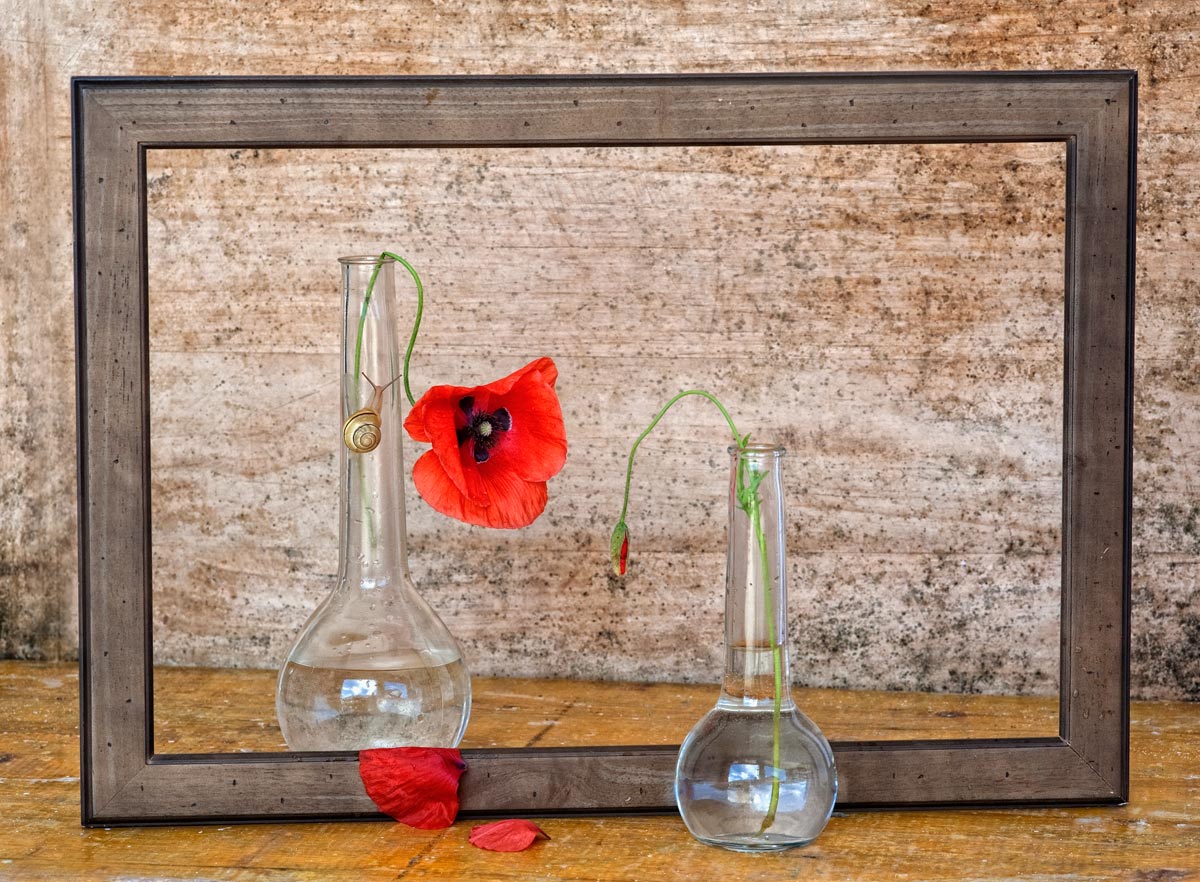 Il petalo caduto, mollemente in bilico, e la cornice che unisce i protagonsiti e e nello stesso tempo li separa, oltre ad un piccolo inchino fra loro, che emoziona ;tutto il il resto è la gestione che sai perfettamente padroneggiare, fra contrasti e colori , e invenzioni compositive.