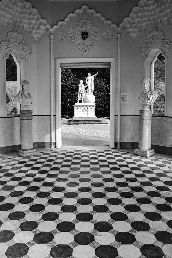 Tutto questo ordine presentato senza accenno di stucchevolezza mi piace molto. Il reiterato ordine del pavimento ci conduce alla bella statua ed alla luce del cammino che la bella “musa” ci indica.