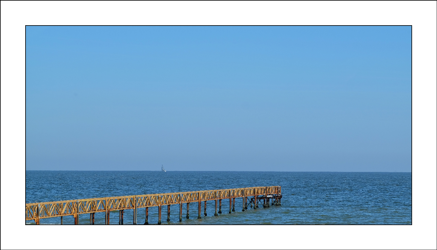 Immagine di ampio respiro che ci parla di spazi e di libertà con il pontile che è un invito a partire sulle ali della piccola barca in lontananza.Interessante e non classica composizione che privilegia il cielo terso,belli i colori.Buone anche le altre due immagini a corredo. Ciao