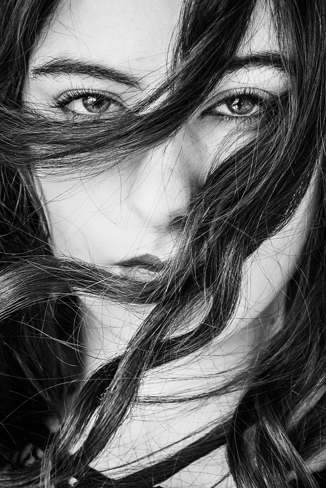 Ottima l’idea dei capelli sul viso: aggiungono dinamismo ad un’immagine che, così frontale, rischiava di risultare fin troppo statica.