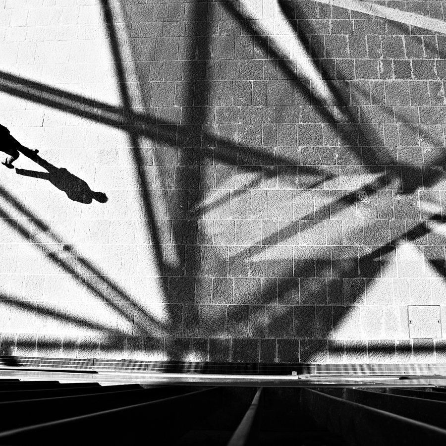 Buon pomeriggio Gianluca, ciò che trovo molto interessante è la nettezza dell'ombra umana rispetto alla 'rarefazione' delle linee in cui pare entrare a passo sicuro, lasciando all'immaginazione se ella attraversera zone chiare o scure, come succede nella vita in fondo. Bello il formato, ma la stò guardando pensando di tagliarla lasciando solo il passo appunto (la scarpa) , ma mi scuserai se dico una sciocchezza ,è che la vedo così