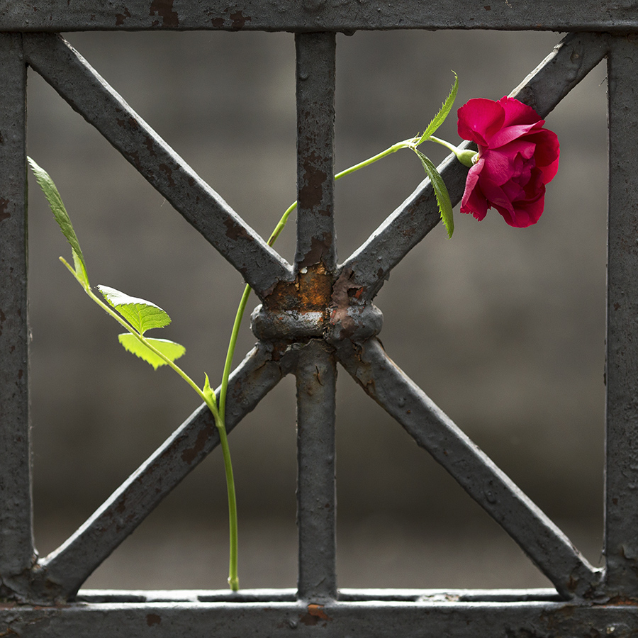 Semplice ed elegante. La delicata carezza di un fiore,con i suoi vivi colori,sul freddo e ruvido metallo e la sua ruggine.Forse un pelino forte la luce,ma la trovo molto piacevole  _________________